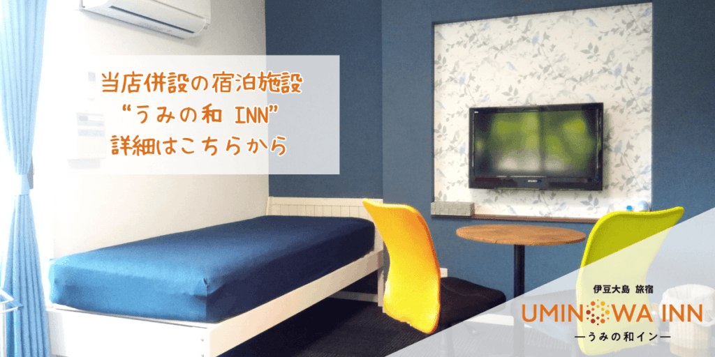 当店は岡田港・秋の浜・ハンマーヘッドシャークを見ることができるケイカイにも近く便利です。