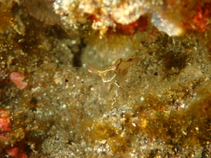 アーチの中にいるイロカエルアンコウ。ダイバーの泡、嫌じゃないのかしら?