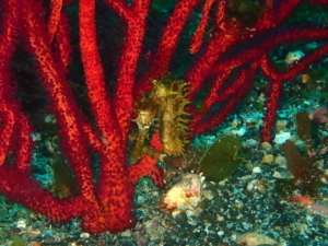 先日、紹介したイロカエルアンコウの幼魚が、まだ観察出来ています。水玉模様で、可愛らしい個体です。