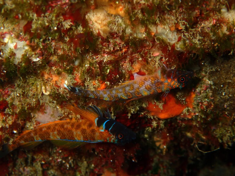 では本題にヒメギンポの産卵です。 今日のは、メスはやる気満々なのに、オスが…。