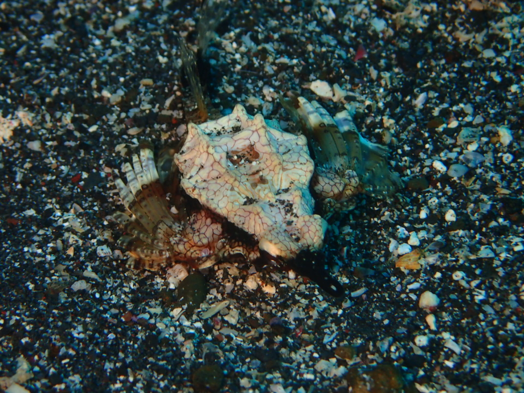 野田浜ののイロカエルアンコウです。うみのわ、アクビをしている所を撮影しました。アーチの中にいるイロカエルアンコウ。ダイバーの泡、嫌じゃないの...