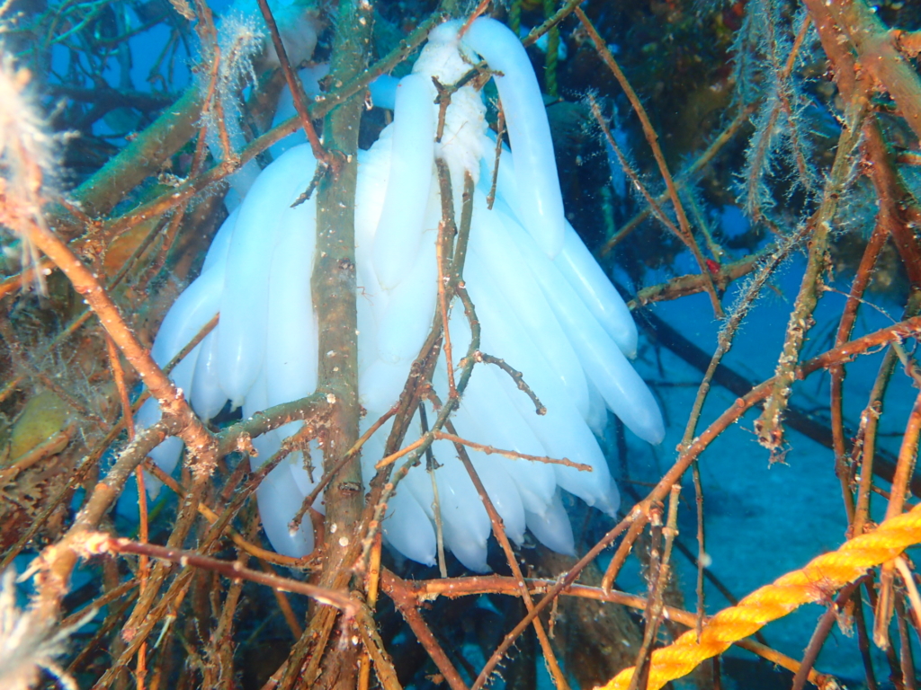 伊豆大島・秋の浜のアオリイカの卵です。うみのわが、水中写真を撮影したのが5/26。でも観察が確認できたのは、23日でした。その後、潜っていな...