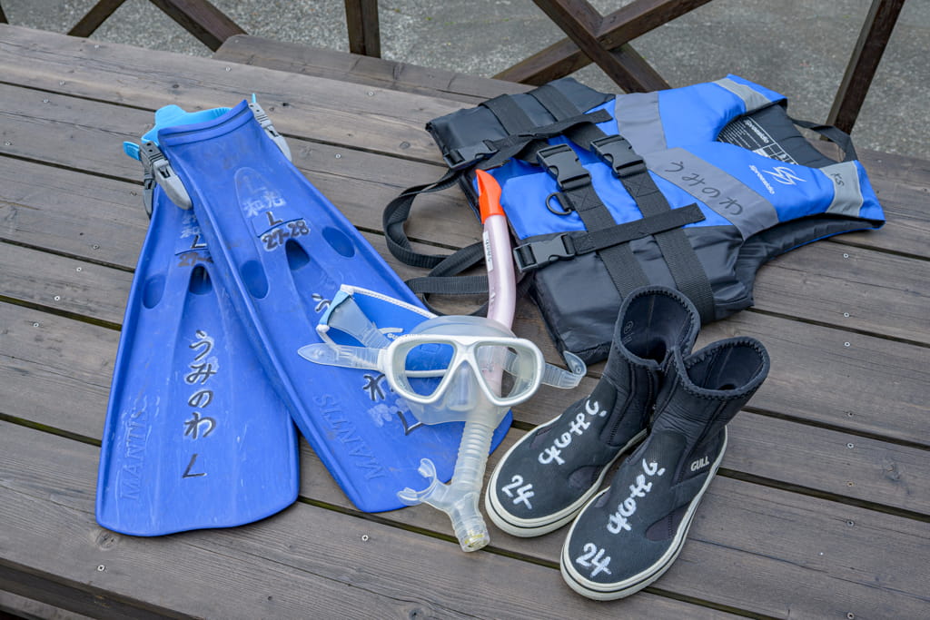 • スノーケリングをするには、①+②のセット(2,800円)が必要です。(足ひれを使用するには、ブーツが必要となります)